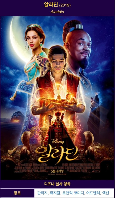 가이 리치가 감독한 디즈니의 "알라딘"의 2019년 실사 영화는 원작에 충실하면서도, 소중한 애니메이션 고전을 신선하고 활기찬 해석으로 다시 만들어냅니다. 이 영화는 허구적이고 북적거리는 사막의 거대한 아그라바를 배경으로 하며, 마음씨는 착하지만 가난한 "거친" 다이아몬드인 알라딘의 모험을 따릅니다 알라딘(메나 마수드 분)은 그의 경건한 원숭이 아부와 함께 아그라바의 철저한 길에서 좀도둑질을 하는 삶을 삽니다. 그의 초라한 환경에도 불구하고, 알라딘은 더 나은 삶, 즉 그의 천한 신분을 뛰어넘을 수 있는 삶을 꿈꿉니다. 그가 거대함을 탐험하고 궁궐 생활의 제약에서 벗어나기 위해 플렙으로 변장한 재스민 공주( 나오미 스콧 분)를 만나면서 그의 운명은 바뀝니다. 재스민은 왕족의 신분을 비밀로 유지하지만, 두 사람은 즉시 관계를 맺습니다. 한편, 불의한 그랑 비지에 (마르완 켄자리가 연기한) 자파르는 술탄 (나비드 네가반이 연기한)을 세우고 아그라바의 지배권을 잡기 위해 묵인하고 있습니다. 자파르는 그 힘이 그의 간청을 들어줄 것이라고 믿으면서 신동들의 동굴 안에 숨겨진 마법의 등불을 찾습니다. 여전히, 오직 "거친 다이아몬드"인 사람만이 그 광야에 들어가서 등불을 회수할 수 있습니다. 이것을 받고, 자파르는 알라딘을 속여서 등불을 그에게 주기 위해 광야로 들어갑니다. 신동의 동굴 안에서, 알라딘은 마법의 카펫과 신비한 비콘을 발견합니다. 그가 무심코 비콘을 문지르면, 그는 세 가지 소원을 들어줄 수 있는 능력이 있는 중요하고 매력적인 존재인 지니(윌 스미스 분)를 놓아줍니다. 알라딘의 첫 번째 소원은 나폴레옹이 되어 그녀의 아버지의 소원에 따라 나폴레옹과 결혼할 것으로 기대되는 재스민 공주의 사랑을 받을 수 있도록 하는 것입니다. "알리 왕자"로서 알라딘은 웅장한 입구로 아그라바를 현혹시키고 결국 자스민의 관심을 받습니다. 그럼에도 불구하고, 자파르는 곧 알라딘의 진짜 정체를 알게 되고, 자신을 위해 봉수를 훔치고 권력을 잡기 위한 계획을 세웁니다. 알라딘이 그의 속임수를 유지하고, 궁정의 음모를 피하고, 그가 아끼는 사람들을 자파르의 음모로부터 덮기 위해 고군분투하면서 음모는 더욱 짙어집니다. 이야기는 자파르가 봉수대를 장악하고 그의 소원을 이용하여 세상에서 가장 중요한 마법사가 될 때 절정에 달합니다. 그는 재스민과 술탄을 투옥하고 알라딘을 도로 쥐로 다시 변신시키고 지니를 그의 뜻에 맞게 구부리려고 시도합니다. 여전히 알라딘은 재치와 교활함을 이용하여 자파르가 각자 중요한 지니가 되기를 바라도록 속입니다. 이것은 모든 지니를 지배하는 동일한 규칙에 묶여 봉수대에 자파르를 얽히게 하는 역작용을 원합니다. 결국 알라딘은 자신의 마지막 욕망을 이용해 지니를 자신의 봉수에서 해방시켜 오랫동안 요구했던 자유를 허락합니다. 알라딘의 용기와 성격에 감명을 받은 술탄은 재스민이 누구를 선택하든 결혼할 수 있도록 법을 바꿉니다. 이제 자유롭게 그녀의 마음을 따르는 재스민은 알라딘을 선택하고, 그들은 아그라바를 나란히 통치하면서 함께 삶의 새로운 장을 시작합니다. 영화는 지니가 자유로운 영혼으로서 자신의 모험을 시작하면서 즐거운 축제로 마무리됩니다.